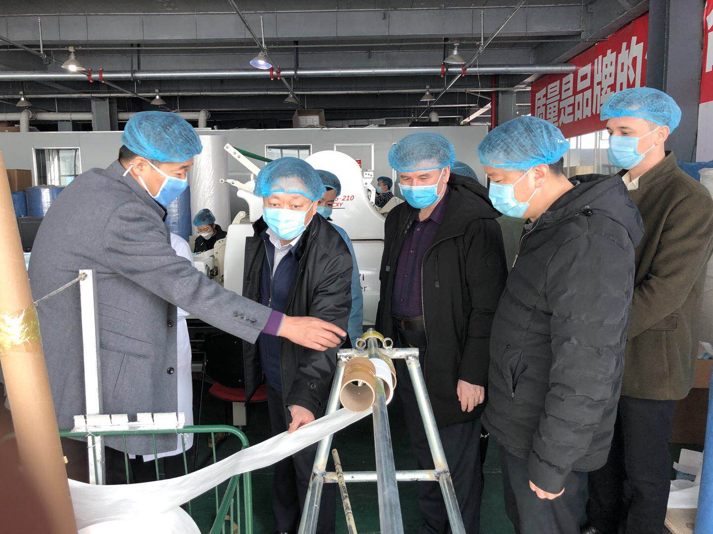 3月9日上午,校党委书记李长江,党委委员、副校长衣马木艾山·阿布都克里木,党委委员、宣传统战部部长张冠华前往新疆乐贝尔贸易有限公司,慰问了我校在口罩车间坚守岗位支援生产的21名师生志愿者,并进行了座谈交流。