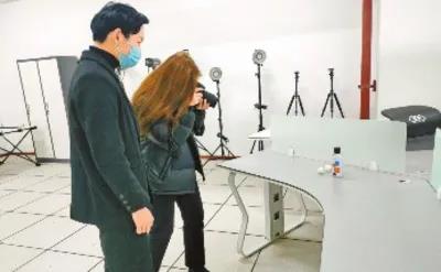 乌鲁木齐职业大学经贸学院电子商务专业学生刘洋(左)和同学拍摄商品,为美工项目做准备。(受访者供图)