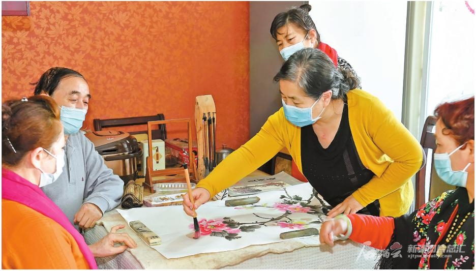 12月11日,蒲公英社区学院的学员一起练习、交流绘画技巧。