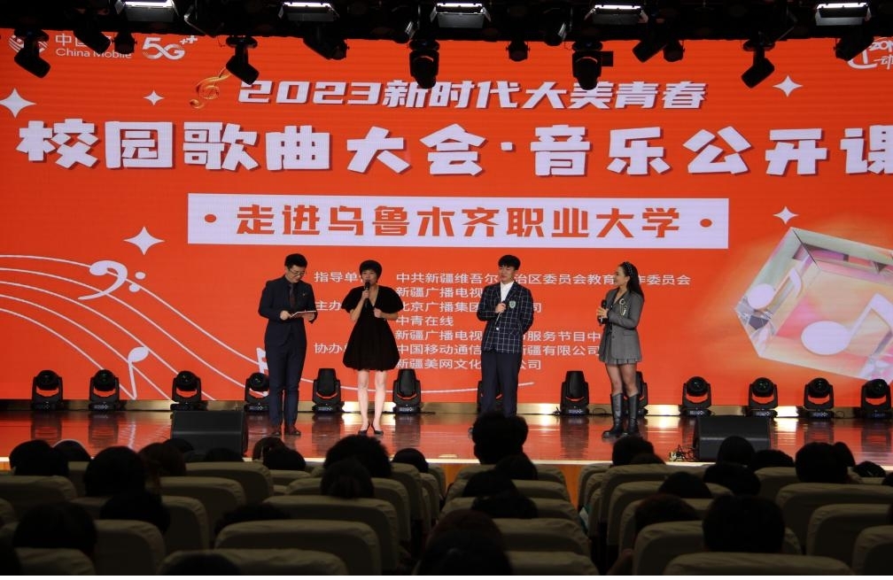 9月25日下午,由自治区党委教育工委、新疆广播电视台指导,北京广播集团有限公司等单位共同主办的“2023新时代大美青春”校园歌曲大会 · 音乐公开课走进我校,为学生们上了一堂别开生面、精彩纷呈的公开课。我校艺术学院声乐专业学生代表、祥云校区各学院师生代表参加本次活动。