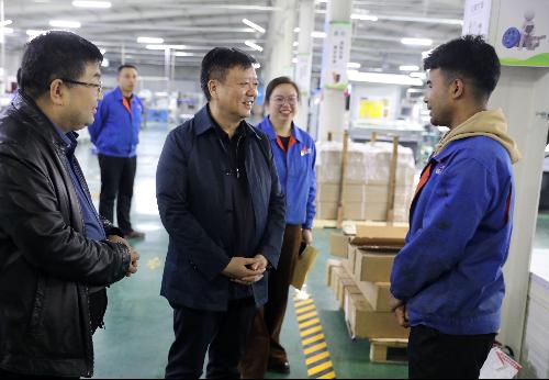 在新疆金版印务有限公司,公司领导对唐晓冰一行到访表示热烈欢迎,并带领参观了公司的生产车间和办公区域。唐晓冰详细了解了企业的生产流程和毕业生在企业的表现情况,并与毕业生进行了亲切交谈。唐晓冰勉励毕业生们要珍惜企业提供的平台,充分发挥所学专业知识,为企业、为社会发展贡献力量。