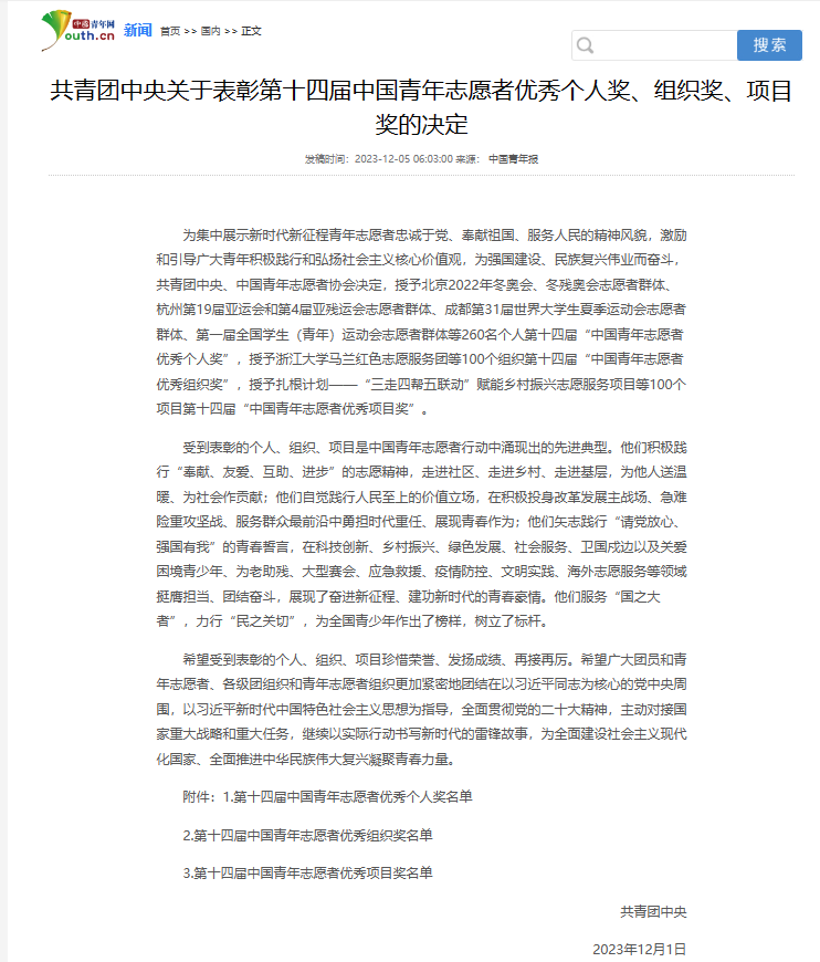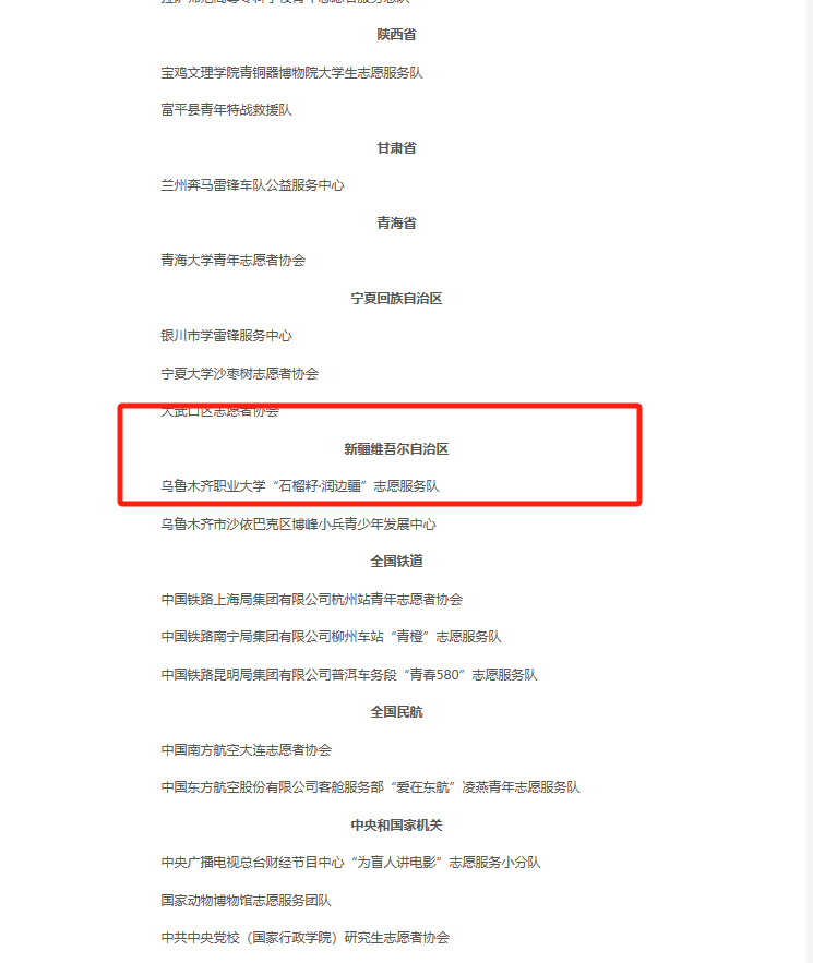 我校“石榴籽 润边疆”志愿者团队荣获第十四届中国青年志愿者优秀团队荣誉称号。