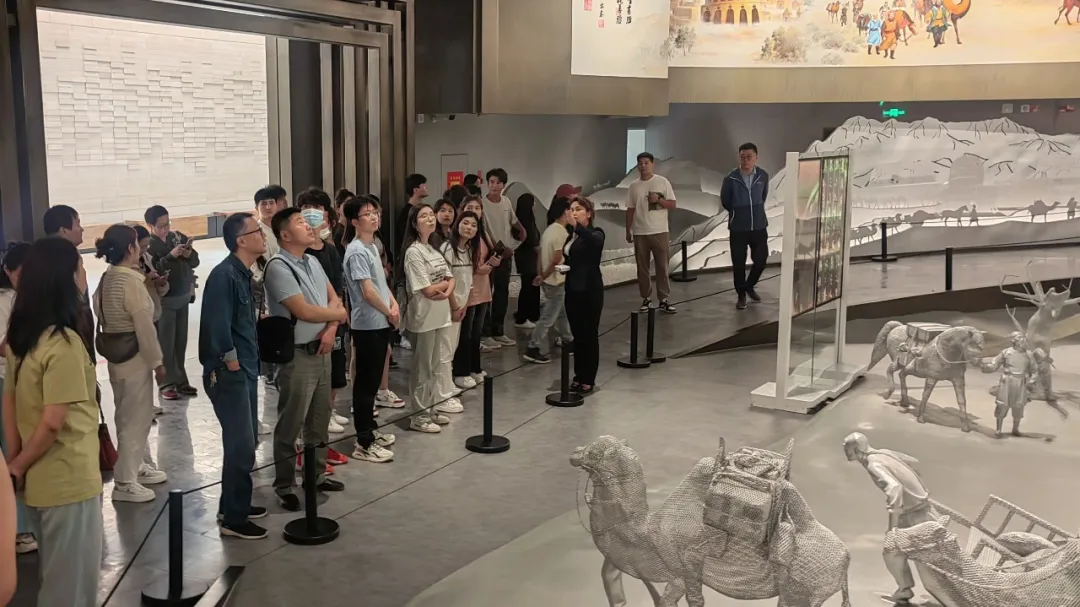 参观中,乌鲁木齐市博物馆以其丰富的馆藏和深厚的历史底蕴吸引着师生们驻足,从新疆民族风情的生动展示,到西域历史记忆的深度挖掘,每一处都成了师生们深入探讨和交流的焦点。在一个半小时的参观过程中,师生们仿佛穿梭于历史的长廊,从古老的青铜器到精致的织物,每一件展品都在专业讲解员的解说下“活”了起来,诉说着属于它们的时代故事。这种直观而深刻的学习方式,极大地激发了学生们学习探寻传统文化的兴趣,也提升了同学们作为中华民族大家庭一员的自豪感。