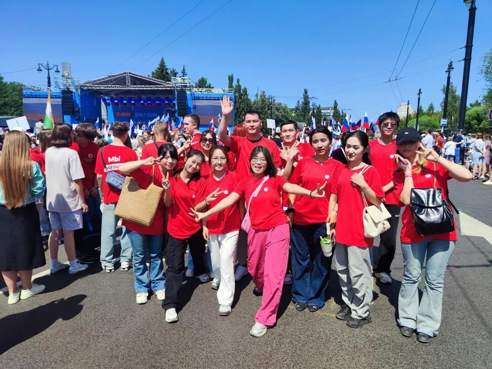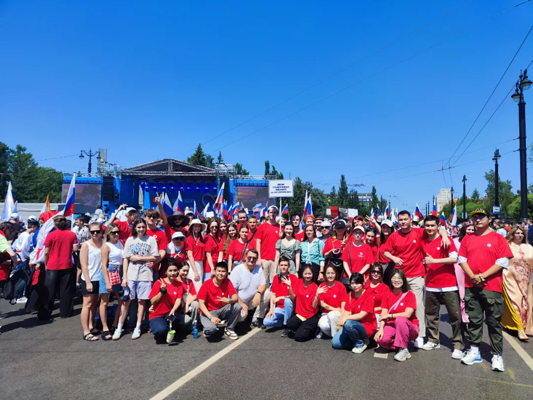 6月12日,俄罗斯鄂木斯克市沉浸在“俄罗斯日”的欢乐氛围中,一场盛大的节庆游街活动隆重举行。来自我校外国语学院应用俄语2206班的16名交换生,以鄂木斯克国立陀思妥耶夫斯基国立大学留学生的身份,代表学校参与了此次意义非凡的庆祝活动。