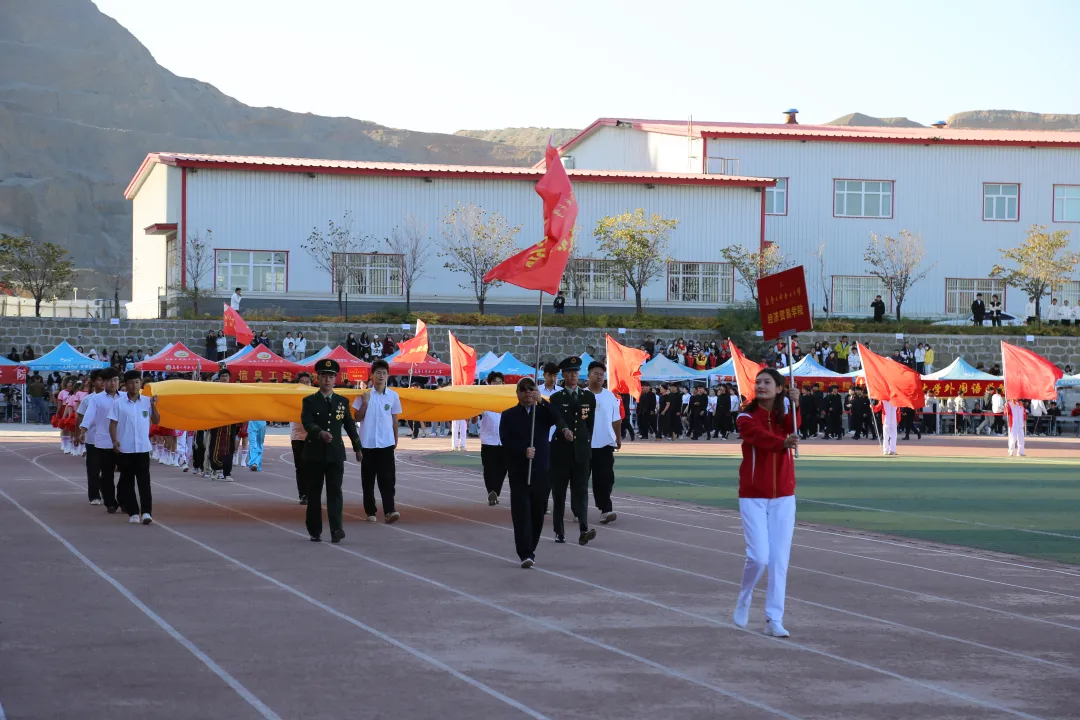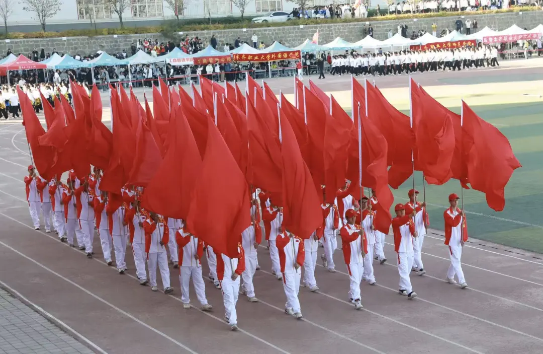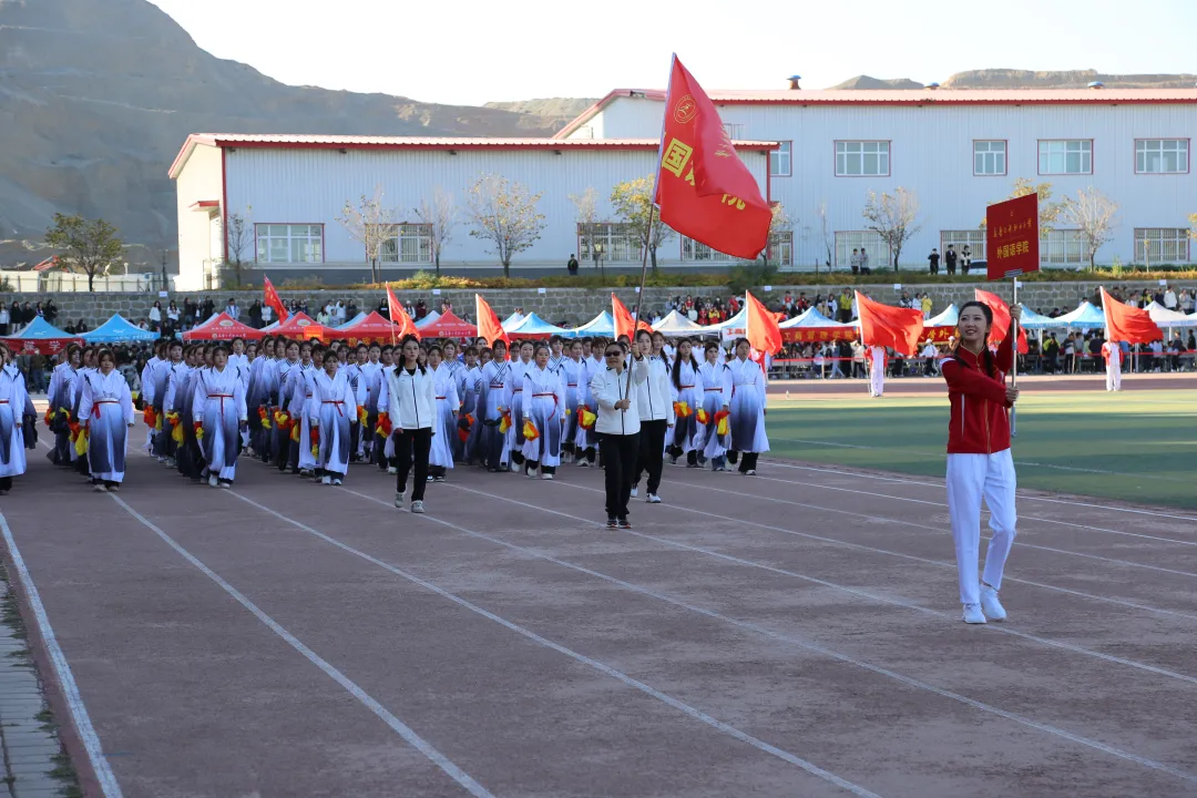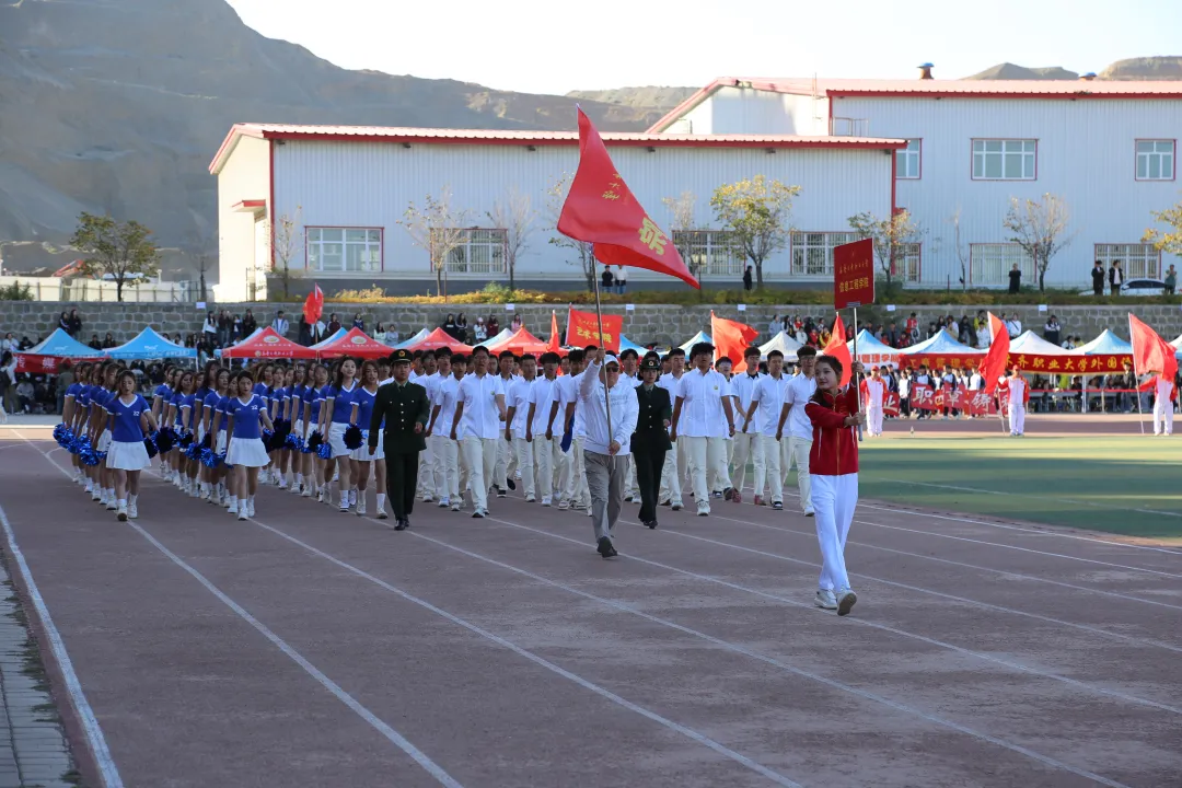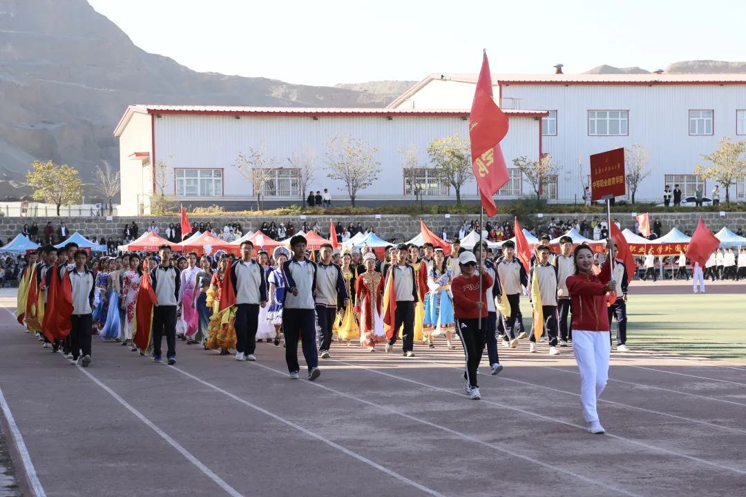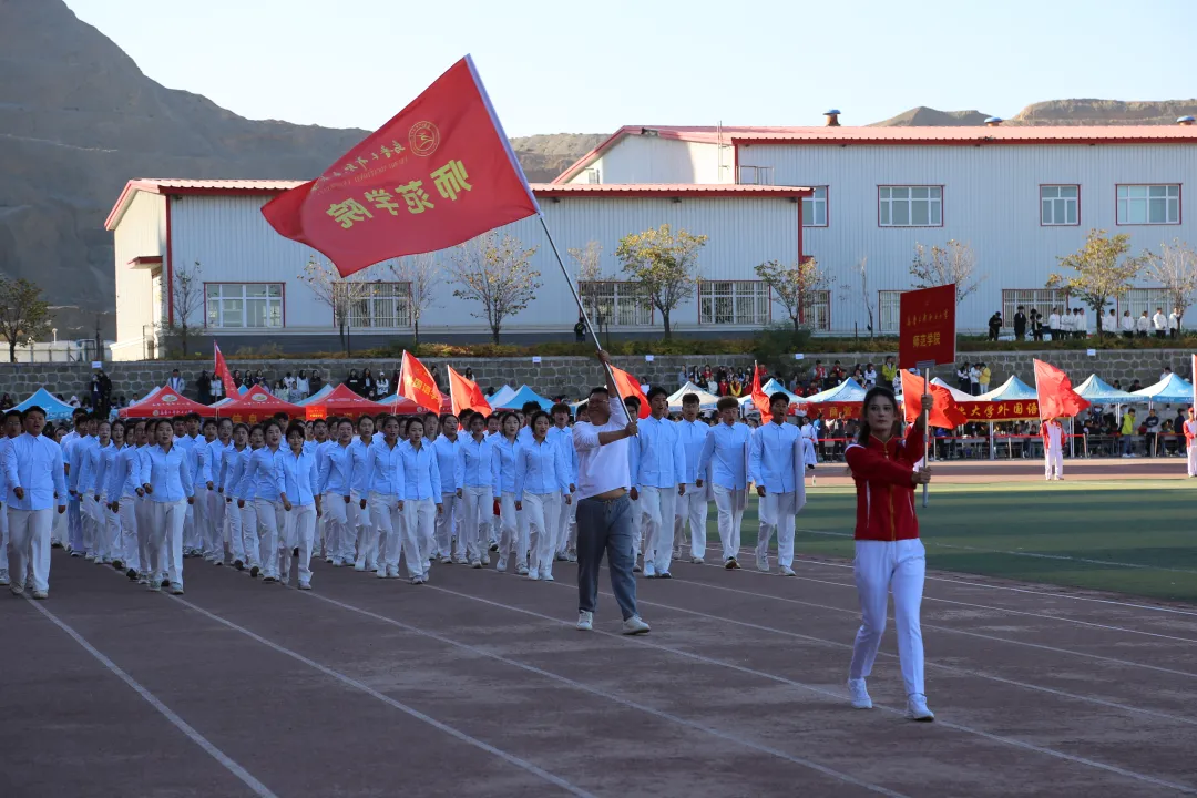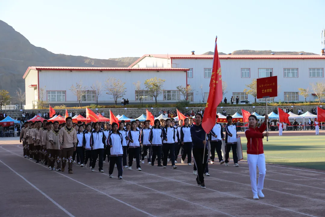 上午10点整,开幕式正式开始。伴随着激昂的音乐,英姿飒爽的国旗方队首先入场,护旗手们迈着铿锵有力的步伐,高擎五星红旗稳步前行,点燃了全场师生的热情。随后各学院方队依次登场,队员们喊着响亮的口号,表演了各具特色的文艺节目,展示出各学院的专业特色,彰显了各族师生朝气蓬勃、奋发向上的青春活力。