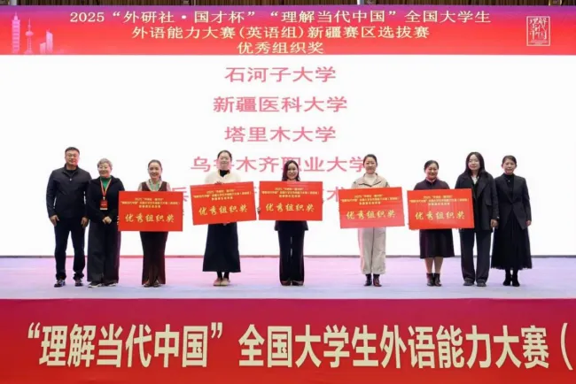 此次大赛由新疆维吾尔自治区教育厅、兵团教育局联合主办,石河子大学承办,新疆高校外语教学研究会、外语教学与研究出版社协办。大赛以“讲好中国故事、服务国际传播”为核心目标,致力于引领青年学生传承中华优秀传统文化,吸引了来自全疆20所本科院校和24所高职院校的300名选手同台竞技。